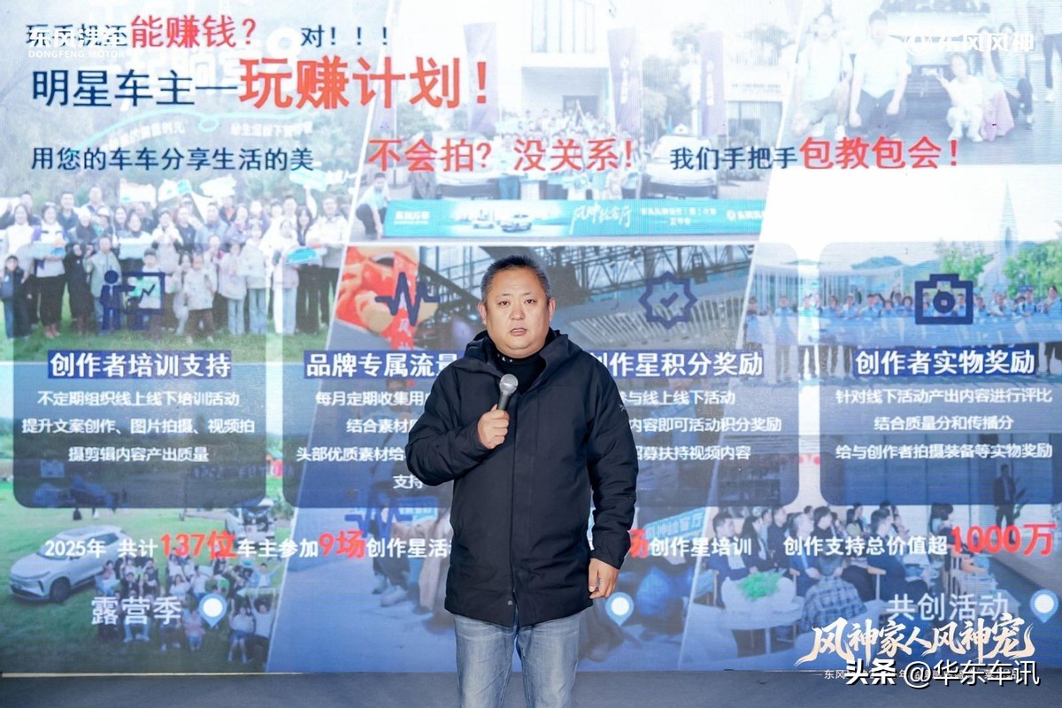 致辞环节中,东风风神鲁豫大区总监付金涛发表深情寄语,回顾风神品牌发展历程,感恩家人们一路同行的信任与支持,更展望了未来携手共进的美好愿景,传递出东风风神“以用户为中心”的品牌初心。随后,莱州英捷风神投资人张英光通过解读“创作星&合伙人”计划,向家人们展现了风神品牌与用户共生共荣的发展理念,邀请更多家人参与到品牌建设之中,以多元方式为风神发展添砖加瓦。